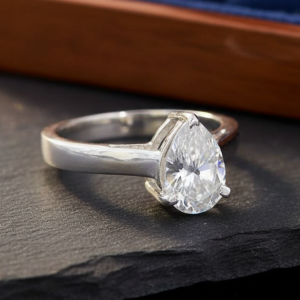 Amazing Lab Created 1.80 Ct, Pear Cut White Diamond Ring, Great Sparkle & Luster. Gift For Love