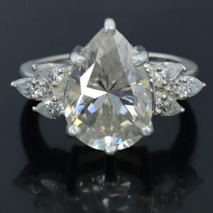 Amazing 6.00 Ct Lab Created Pear Cut White Diamond Ring With Accents, Wedding Gift !