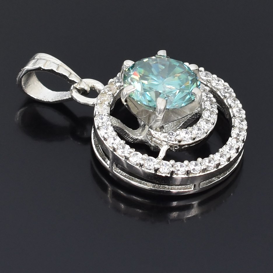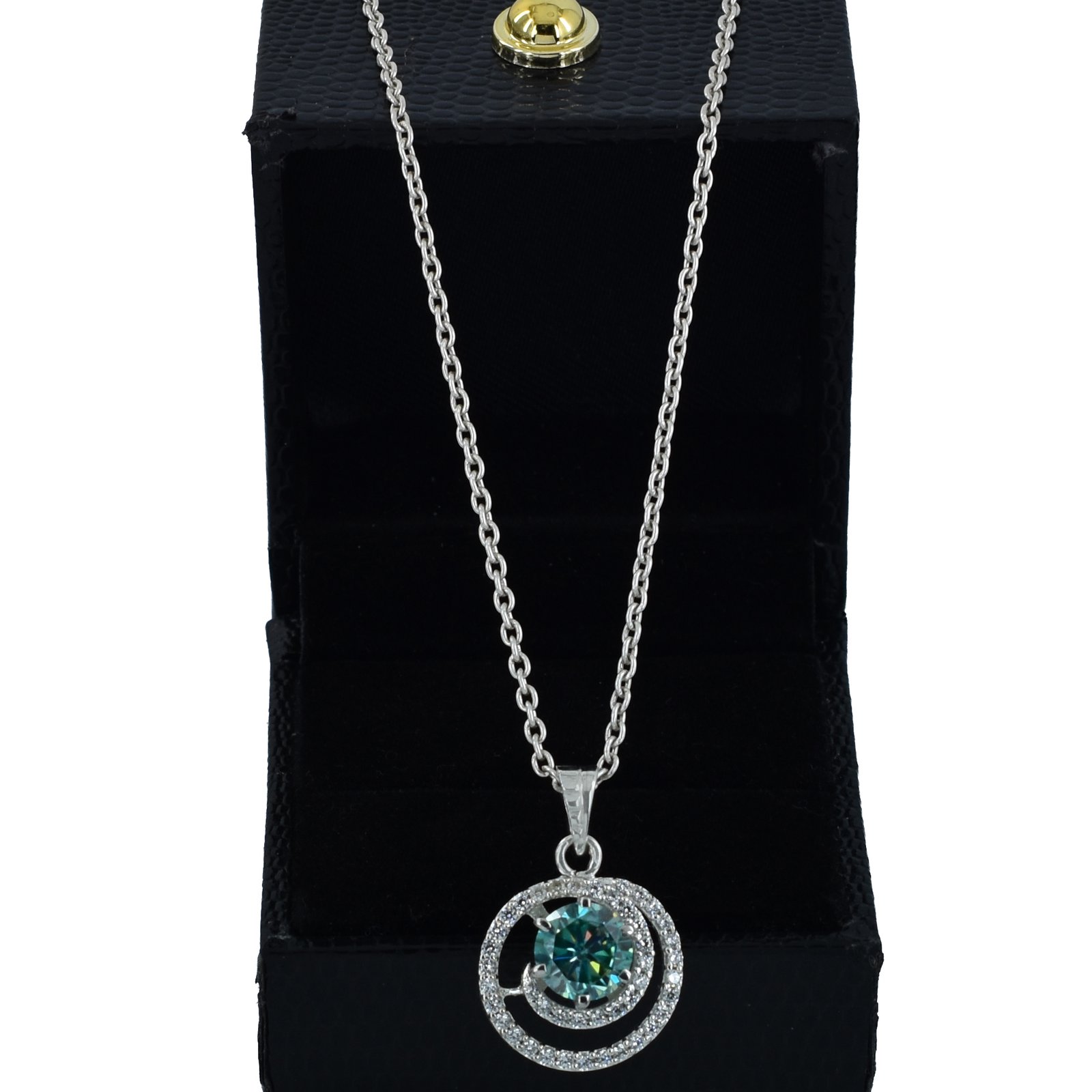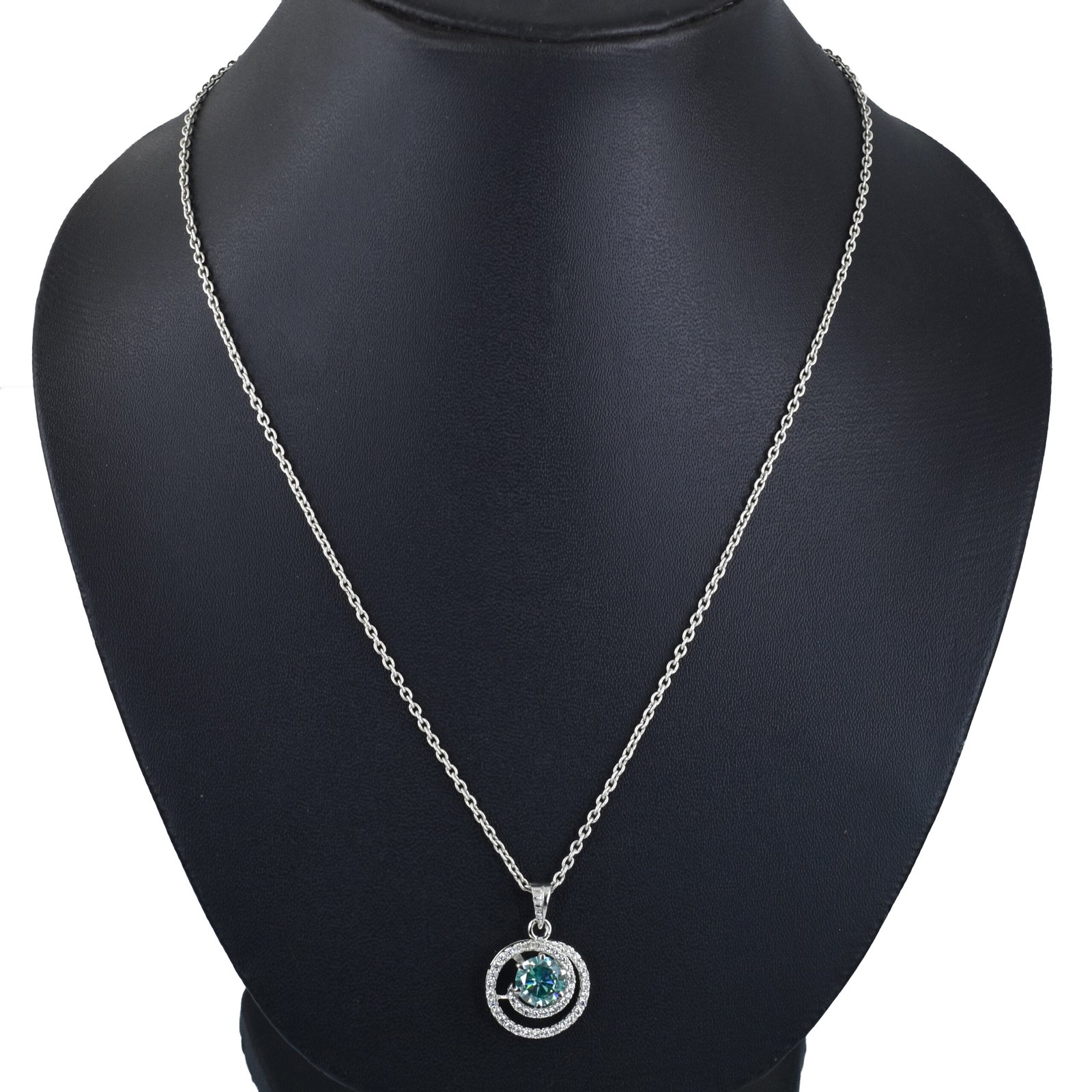 Designer 1.75 Ct Lab Created Blue Diamond Pendant With Accents, Great Sparkle & Luster.
