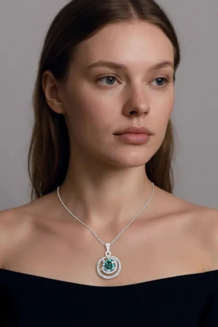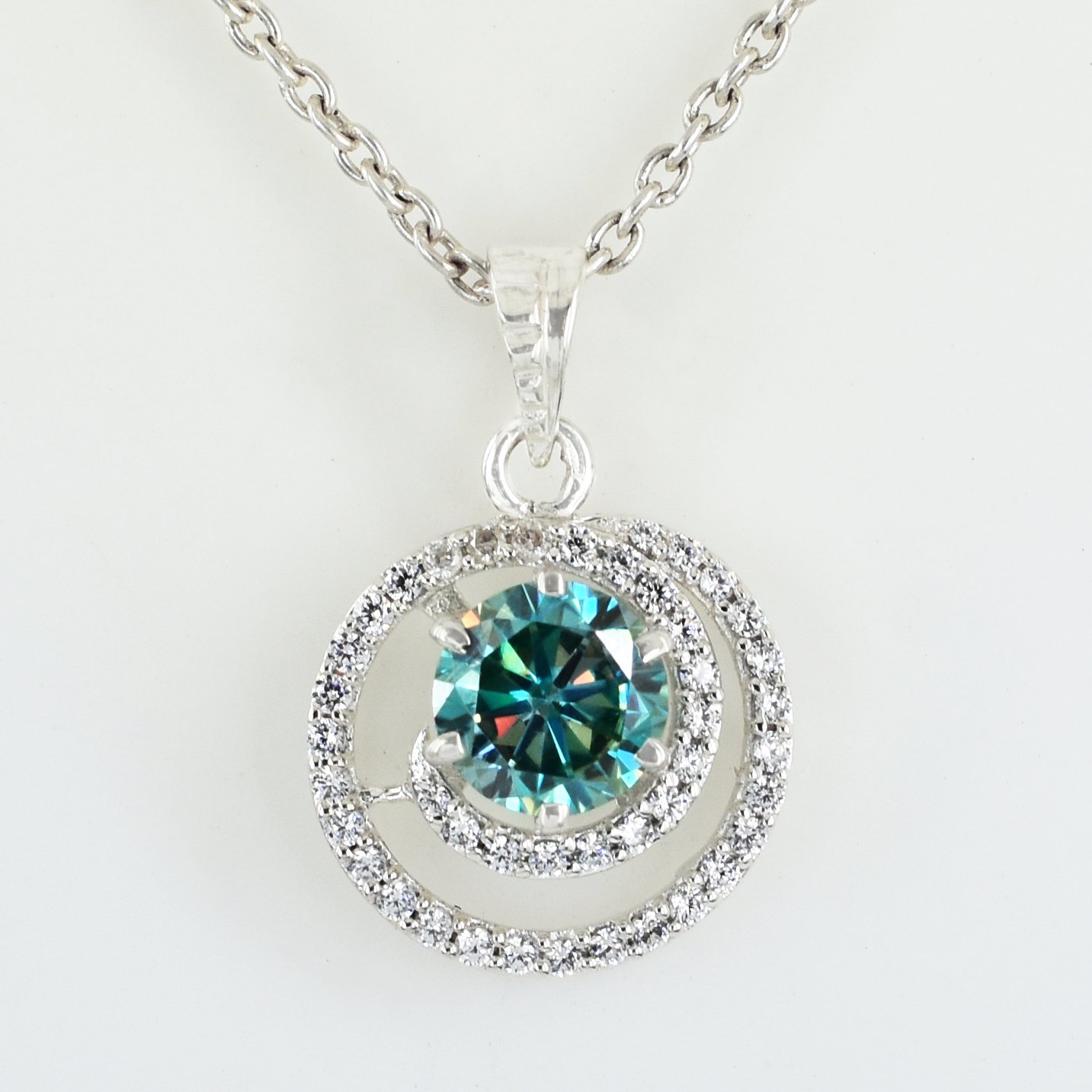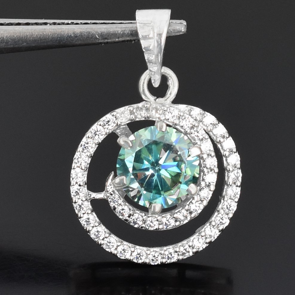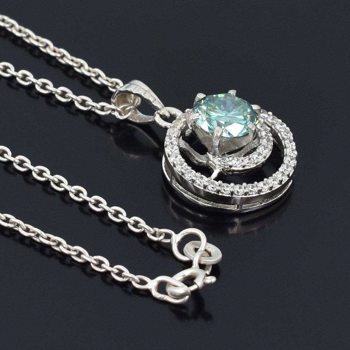 Designer 1.75 Ct Lab Created Blue Diamond Pendant With Accents, Great Sparkle & Luster.