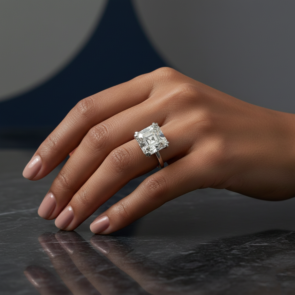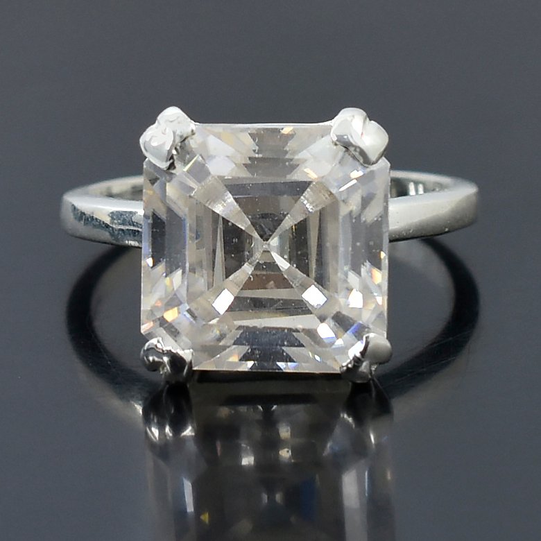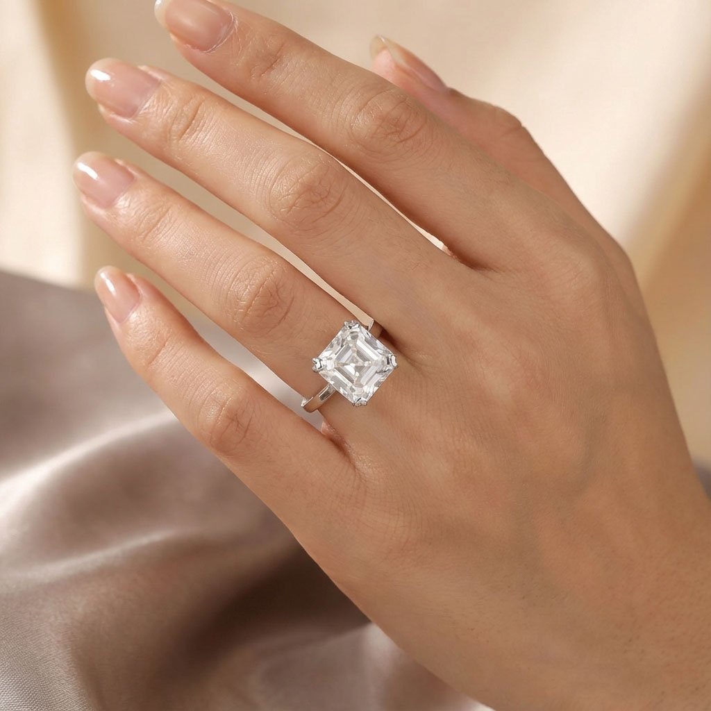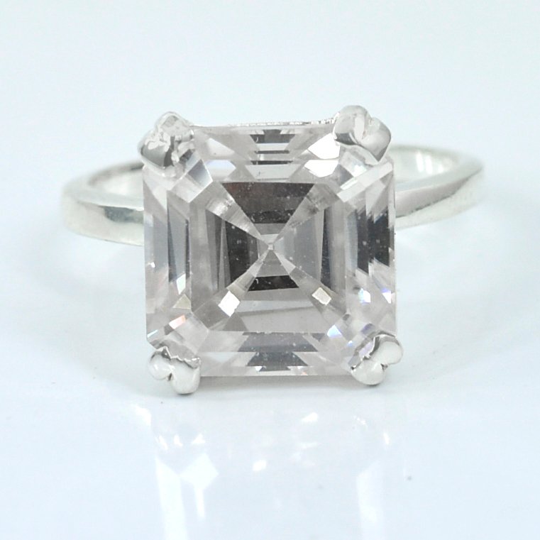 Lovely 7.30 Ct Lab Created White Diamond Ring, Great Sparkle & Luster. Asscher Cut !