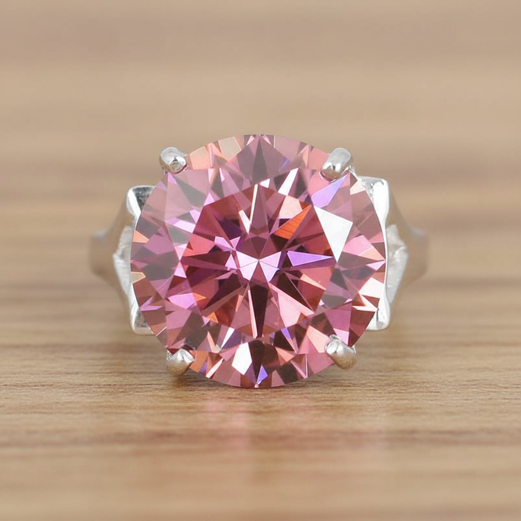 RARE12.50 Ct Lab-Created Pink Diamond Ring, Amazing Shine & Luster, Gift For Love